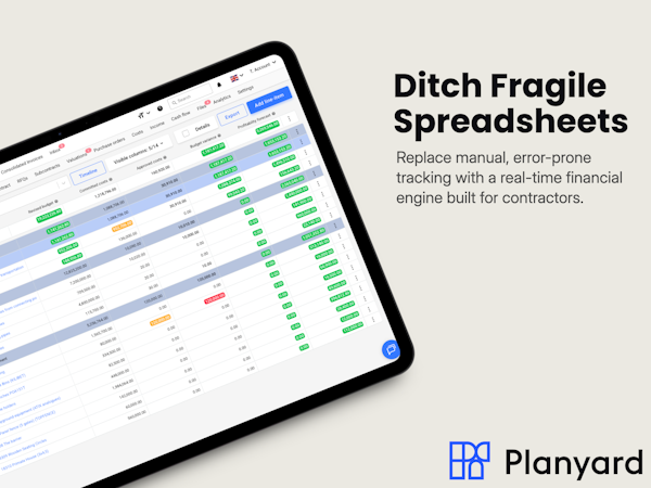 Ideal for small and medium-sized businesses looking to ditch spreadsheets and data duplication, Planyard streamlines cost estimating, quoting, budget control, and profitability tracking, giving your team a clear, real-time view of project costs and profitability. Unlike ERP or generic accounting tools that serve as reporting tools, Planyard is built by construction professionals to simplify day-to-day work.