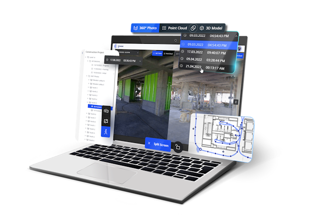 recreations leveraging 360° photos, 3D point clouds, and 3D/bim models.
