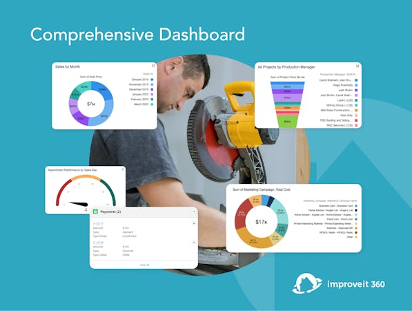 improveit 360 is cloud-based enterprise CRM (customer relationship management) platform that enables home improvement and remodeling businesses to manage leads, sales, marketing, human resources, and projects. improveit provides a 360-degree view into all sales and project operations so businesses can improve operational processes, measure business performance, and manage customers and prospects. As a complete business management solution, improveit 360 can be customized and configured to meet the needs of any business scenario.