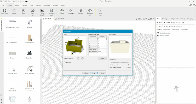 Bathrooms with complex shapes and sizes, such as sloping ceilings or rounded walls, can be created and visualized easily with Innoplus.