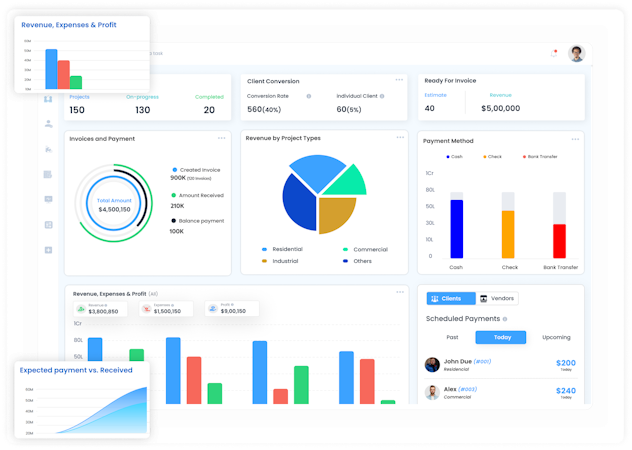 Create estimates, BOQs, and project budgets with greater accuracy while tracking expenses and payments to maintain better financial control over every project.