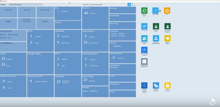 • Power Tools offers control over bidding, accounting, payroll, work order, lien tracking, JCPM, project management, and more.