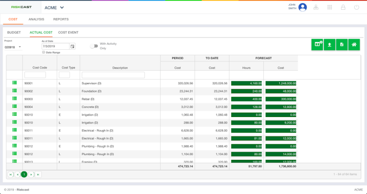 The Riskcast platform also offers job costing and budget tracking tools that facilitate the creation of project budgets, forecasts, and more and allow managers to track real-time data such as cost-to-completion by project. Other features of Riskcast include workforce scheduling, production tracking, daily activity logs, and integration with Procore to sync daily log data.