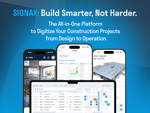 SIGNAX integrates with existing construction workflows and supports building information modeling processes across design and field operations. The solution can be deployed in the cloud or within corporate networks to accommodate enterprise requirements. The platform also supports digital services such as laser scanning, aerial drone surveys, and remote inspections with spherical image capture. Open application programming interfaces allow data exchange with other engineering and design systems.