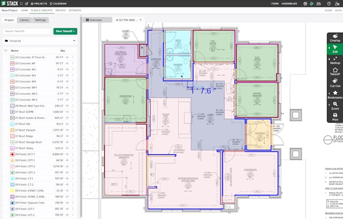 STACK is a takeoff program with key features that include takeoff functionality, electronic plan management, and more.