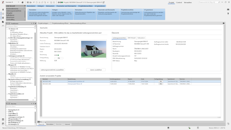 Success X is a construction management software developed by NEVARIS, a provider of business software for the construction industry. It addresses the needs of construction companies, planners, general contractors, general planners and property developers. The system delivers integrated functionality for building information modeling, tendering, awarding, invoicing, cost calculation, invoice management and project controlling. The design aligns with industry requirements in Austria and Germany.