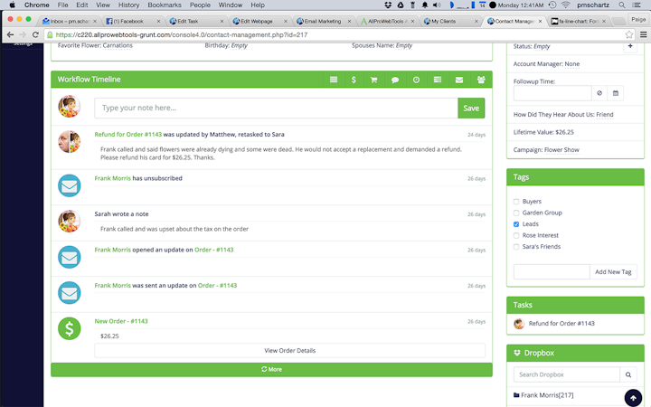 AllProWebTools' ready-to-use bundle includes a core set of features including a workflow timeline, website creation, live chat between employees, marketing analytics, timecards, and tasking. Additional, interchangeable tools include a CRM, SSL certificate, email marketing, Google calendar integration, lead generation, and affiliate marketing.