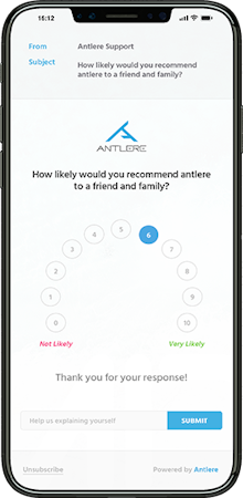 Antlere is a web-based Net Promoter Score (NPS) survey software which enables brands to distribute surveys through multiple channels and analyze customer feedback. Customers can be sent 2-question NPS surveys by email or SMS, asked in-store, or surveys can be embedded directly in websites. Antlere automatically decodes feedback for interpretation, with text analysis to give insight into trending topics, and sentiment analysis to identify positive, negative, or neutral emotion in feedback. Manual and automatic tags allow users to organize feedback and analyze trends, and the number of mentions of individual products and services can also be tracked.