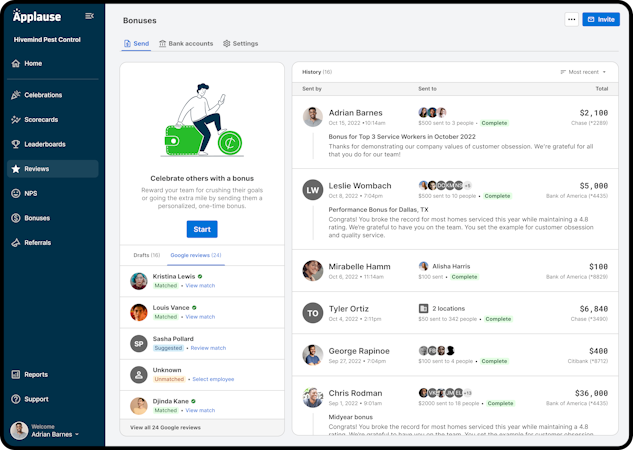 The platform incorporates automated incentive mechanisms that streamline the process of collecting and attributing customer reviews to specific employees. This automation eliminates the manual labor previously required to match feedback with staff members and enables instant bonus distribution when employees generate positive customer experiences. Applause also facilitates digital tipping, allowing customers to directly reward exceptional service while providing valuable feedback that contributes to improved Net Promoter Scores and online reputation management.