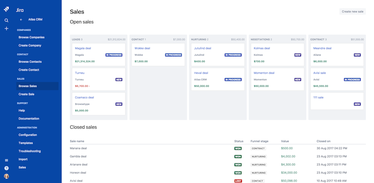 Atlas CRM allows users to manage customer information and record interactions across Atlassian tools including JIRA, Confluence and JIRA Service Desk. Atlas CRM offers a single source of truth for all customer information, issues, and documentation.