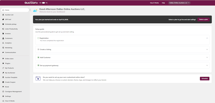 Auction Software offers cloud-based solutions to help government organizations and businesses of all sizes create, launch, and manage e-Commerce websites to sell products and services. The platform offers white-labeling capabilities, which allow enterprises to design personalized storefronts with custom logos, themes, colors, images, and other visual elements to establish brand identity with customers.