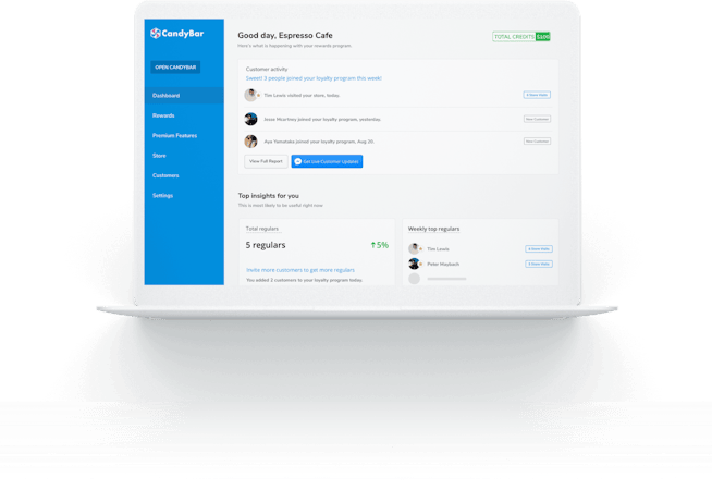 Businesses can use CandyBar to track the success as well as performance of loyalty programs. It also provides a dashboard, where users can view top regulars, stamps and rewards issued to customers.