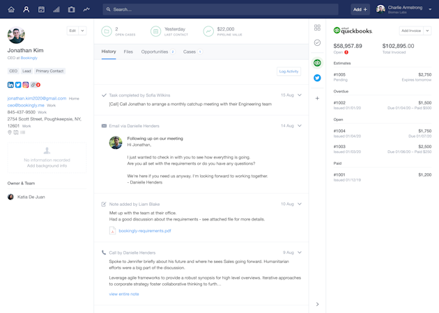 “There is a add on app that we install into Gmail. It allows us to add any conversation directly from the email thread inside of Gmail. I normally send emails to people directly from inside Capsule, but if someone emails me (or responds to me) it is handy to be able to allocate, or create a new opp/case from inside of my inbox (rather than have to forward emails using a BCC).”