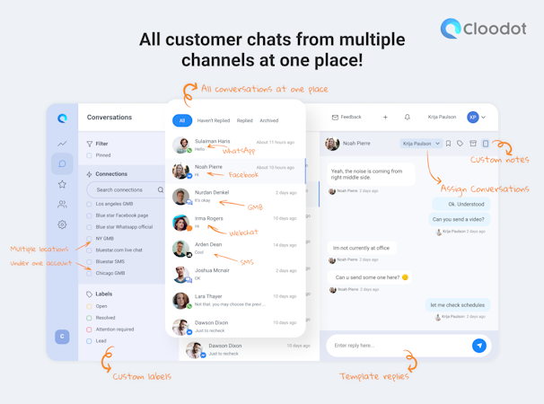 Cloodot is a customer experience management suite to manage chats and reviews from multiple online channels in one inbox.