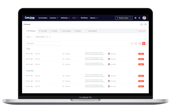 Automate routine tasks, follow-up emails, deal stages, and communication workflows with CrmOne's sales and marketing automation capabilities. It also enables teams to boost team productivity with personalized customer journeys.