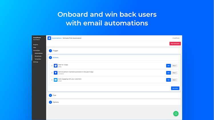 CrowdPower is the a customer engagement tool for SaaS businesses. The software monitors user activity and creates simple "if this, then that" automations based on user behavior. Users can use CrowdPower for email onboarding sequences, feature announcements, usage alerts, review requests, and more. The software helps users win back lapsed customers with automations, send messages to customer segments with broadcasts, and see everything their users do in their app with event tracking. CrowdPower integrates with Segment, Stripe, Zapier, Slack, Discord, Twilio, and other tools users know and love.