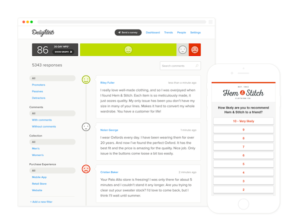 Delighted’s user interface