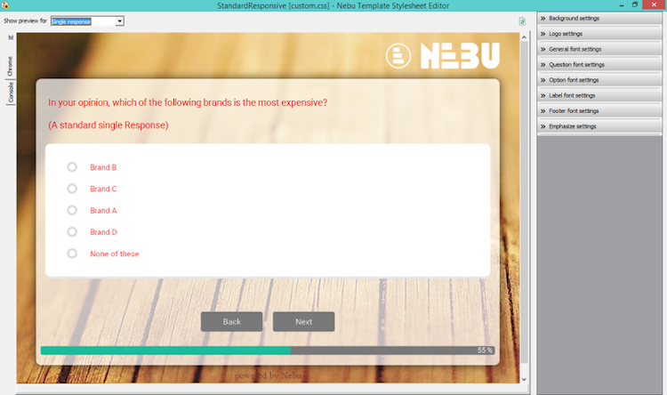 Dub InterViewer has a flexible intuitive interface and simplifies project workflow. The software accelerates online survey scripting for any user skill, and helps create more attractive and engaging questionnaires. Adding text, images and videos is simple with Dub InterViewer’s built-in library of multimedia questions.