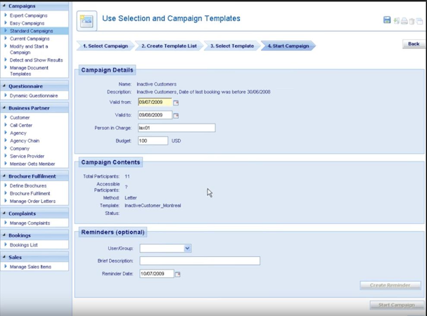 Emerald includes a data enrichment functionality, which automatically classifies customers, updates characteristics and creates profiles based on booking behavior. The solution offers a host of features such as search capabilities, customizable filters, multiple marketing campaigns, role-based access, customer history, and more. The system lets managers create custom questionnaires for client satisfaction surveys and feedback. The complaint management module enables users to create, as well as track, complaints.