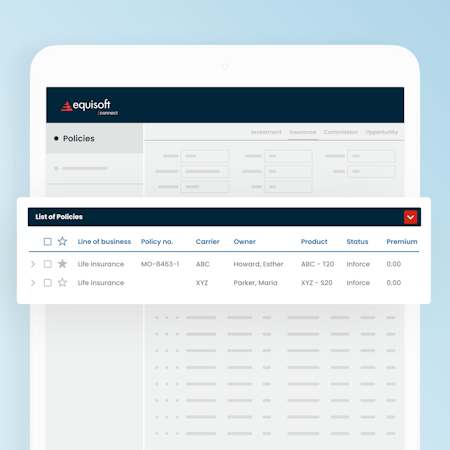 equisoft/connect’s user interface