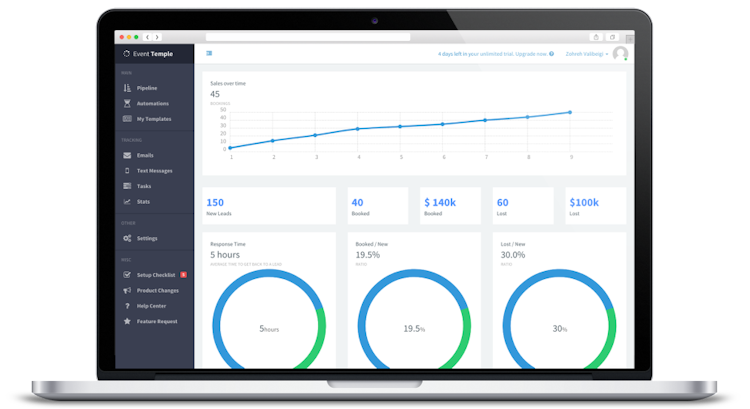 Event Temple is a venue management platform designed to help hotels and venues of all types manage bookings, sales & revenue without any additional advertising. It includes features for CRM, lead management, event management, and sales automation using both email and text.