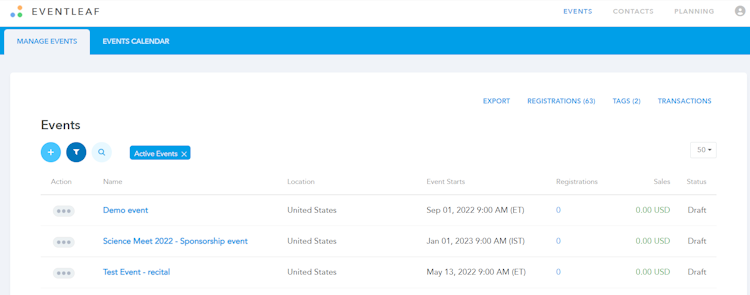 Eventleaf's key features