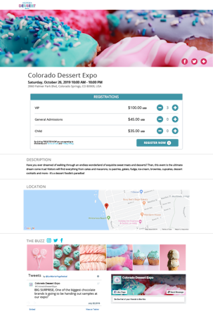 Events.com enables users to set up their event in a few simple steps. First, users add basic information about their event, such as what kind of event they are organizing (festival, fundraiser, conference) and what information they need to collect (registration, tickets). Users can then edit and design their event page to match their event’s brand, look and feel. After that, users can add registration or ticket information, before setting up payment information and going live.