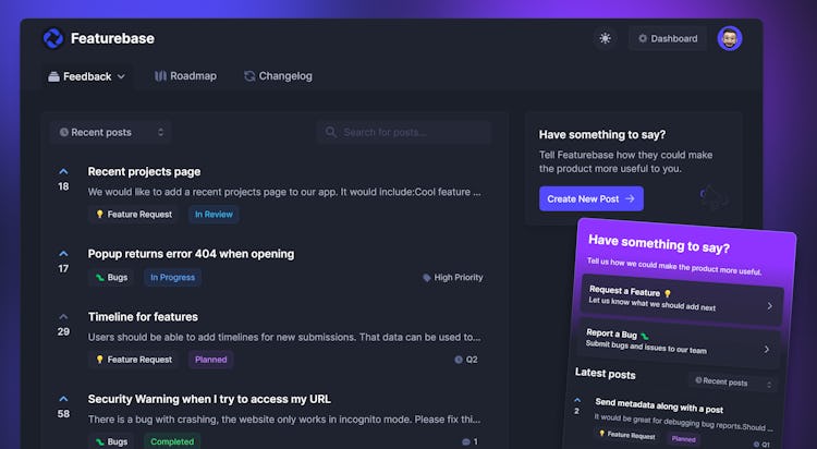 Featurebase is a cloud-based customer satisfaction tool that lets users create customizable feedback boards & widgets to effortlessly capture all user feedback, feature requests, and bug reports. It also allows staff members to analyze feedback, prioritize development with feature voting, and keep customers informed with a public product roadmap and changelog.