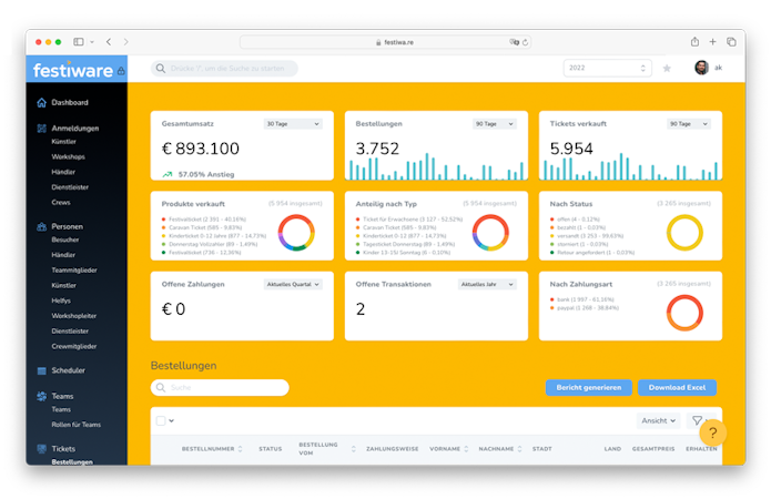 festiware's enables teams to ensure consistent data management and centralized access rights. The platform integrates various event components, including personnel, teams, locations, contracts, and schedules, providing organizers with a holistic view of their event operations.