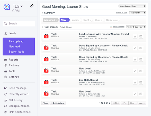 FLG is a UK–based lead management CRM system designed with simplicity, power, and ease of use in mind. It comes with a free trial, lite and professional packages. FLG offers everything you need to manage 100,000s of leads, helping automate workflows and schedule appointments. It comes with a unique free amount of set up days to help businesses new to CRMs start off just right.