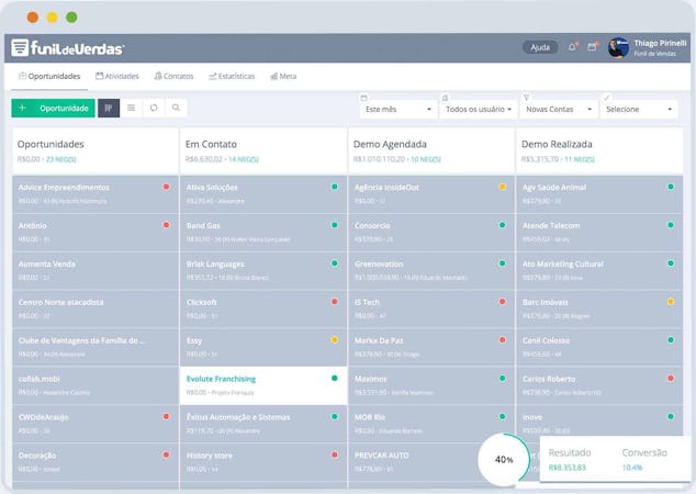 Funil de Vendas is a CRM tool to manage and track sales