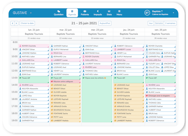 Gustave is a SaaS (Software-as-a-Service) software package, and it is accessible via a web browser on any device connected to the internet. As well as Doctolib, it can be integrated with physiotherapist software apps, such as VEGA or Kiné+4000.