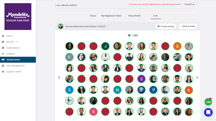 Your virtual event could be a career event, career or recruitment fair, webinar, product or feature launch, or something else. Whatever it is, we will help you host it. We provide a number of features like flexible setup, event promotion, text and video chat, outstanding live support and live analytics. Our software is hosted in the cloud so there is no installation on your computer required