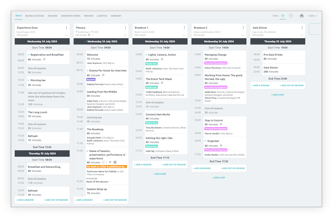 - Shareable and personalised schedules for set-up, run, and packdown synchronized to program