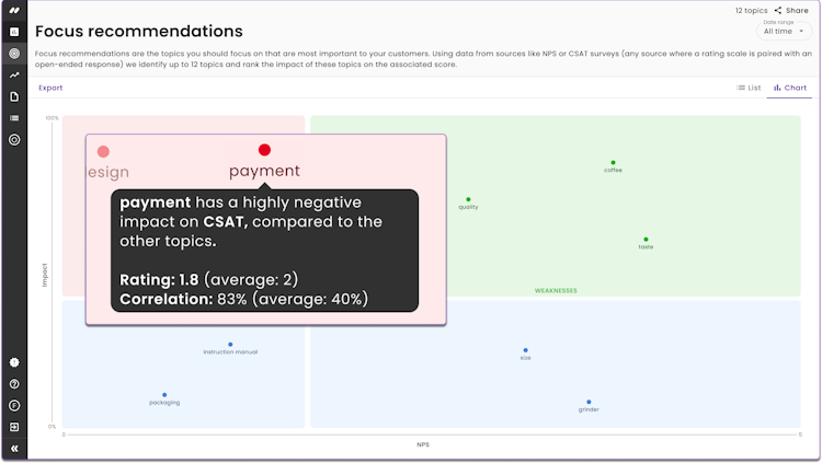 Keatext gives you a head start by analyzing feedback and generating AI-based recommendations on what to address first, delivered in a ready-to-share report.