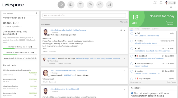 Livespace is an intuitive CRM platform, built for professionals sales teams by those in the know. Using its adaptable and automated sales processes, Livespace users are able to gain the most from every lead, including an open API for seamless integration and mobile / tablet access. Livespace allows users to prioritize and spend time where it matters.