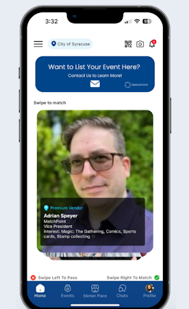 The platform's core functionality revolves around its proprietary matching algorithm that analyzes professional interests and online behavior to create targeted connections between event participants. MatchPoint eliminates the inefficiencies of conventional networking methods by automatically identifying potential valuable connections based on compatibility factors. The system features dedicated interfaces for different user types. Event organizers can facilitate targeted networking opportunities to enhance overall event experience; attendees can discover relevant professional connections based on specific interests and exhibitors can connect with genuinely interested prospects, maximizing the return on investment. The platform operates through mobile applications available on both iOS and Android devices, providing a streamlined user experience that increases attendee satisfaction and engagement levels at professional events.