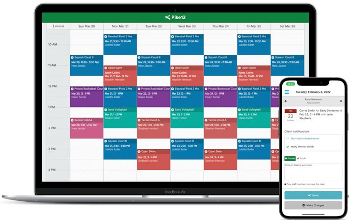 With easy scheduling, client management, and payment processing, Pike13 – custom branded to fit your business' look and feel – makes it easy for you to manage your fitness or fine arts instruction business from any smartphone, tablet, or desktop computer. That way, you can focus your energy on growing your business and doing what you love.