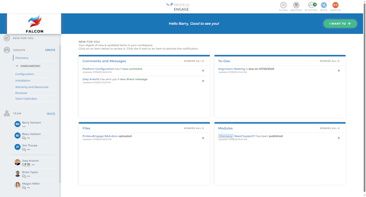 ProteusEngage is a cloud-based and on-premise tool that helps B2B enterprises streamline customer journeys by uniting sales, onboarding, and customer success in a unified workspace. With automated playbooks, real-time engagement tracking, and seamless collaboration, the tool helps teams close deals, onboard clients, and more.