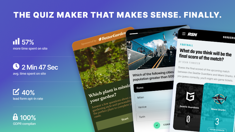 Qzzr is a web-based quiz creation tool which can be used by marketers, companies, publishers, and agencies to generate leads, increase social engagement, and present targeted offers to visitors based on their quiz answers. Quizzes can be embedded into sites, either through a line of code or a WordPress plugin, and shared across social media networks.