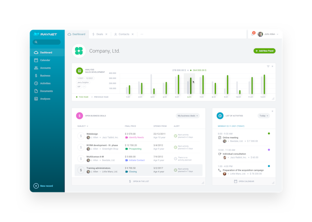 RAYNET CRM’s user interface