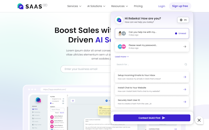 7. Seamless Integration with Existing Support Systems: "Milly works seamlessly with SaaSFirst's Inbox and CRM modules, ensuring a cohesive and efficient customer support experience. Leverage Milly's integration capabilities to streamline your support processes and enhance customer satisfaction.