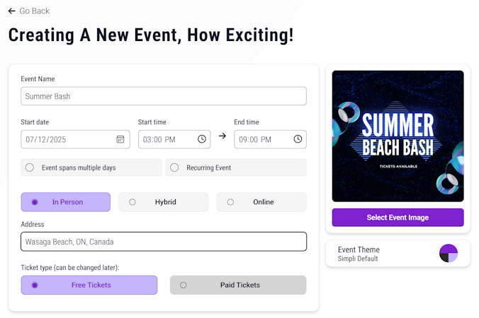Simpli Events is an online event hosting platform that offers event ticketing and a suite of tools to help event organizers create, host, and market events. Designed for event planners, festival organizers, wedding coordinators, nonprofit organizations, and corporate event managers, Simpli Events provides a comprehensive solution for hosting events of all kinds, from parties and workshops to fundraisers, galas, and festivals.