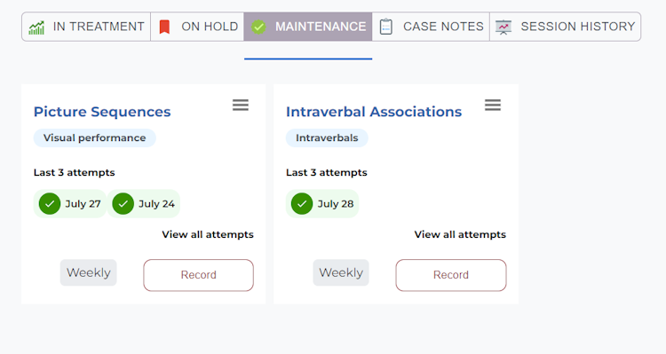 Solutions ABA is an applied behavior analysis data collection software designed to help businesses support data recording, track progress, and achieve goals. Its target phases include baseline, in-treatment, on-hold, and maintenance. The platform supports various data types, including cold probes, trials, frequencies, and rates.