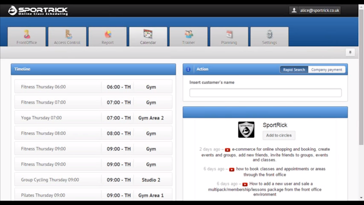 SPORTRICK is a cloud-based business management software designed to help sports centers and fitness clubs handle various administrative operations, such as class bookings, memberships, payment processing, data analysis, and more. Clients can use various identity verification tools, such as RFID, biometrics, magnetic bands, or QR codes, to gain access to gyms and facilities across multiple locations.