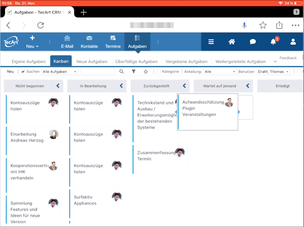 TecArt includes a built-in email module, which enables enterprises to send notifications, announcements, and marketing emails to clients using custom templates. It offers a host of features such as contract and document management, job prioritization, roster scheduling, offer management, vacation planning, and more. Administrators can also use the Kanban board to create, assign, and track multiple tasks for members across various departments.