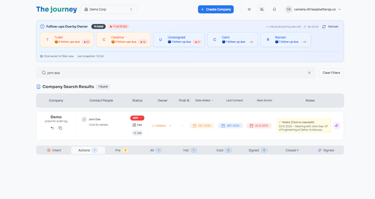 Journey is built around three things service teams actually do: import contacts, enrich them, and reach out. Everything else is noise.