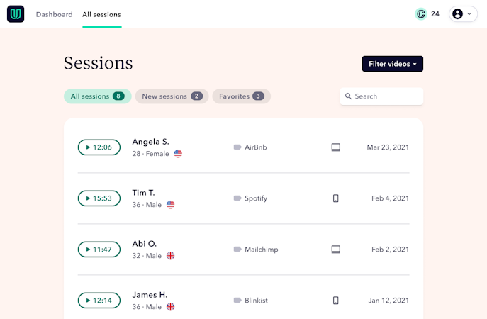 Userbrain’s user interface