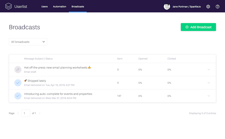 Userlist is a cloud-based customer engagement platform that enables enterprises to onboard clients and streamline communication by sending behavior-based notifications to a targeted group via emails or text messages. Features include embedded templates, reusable snippets, worksheets, repeatable campaigns, open and click tracking.