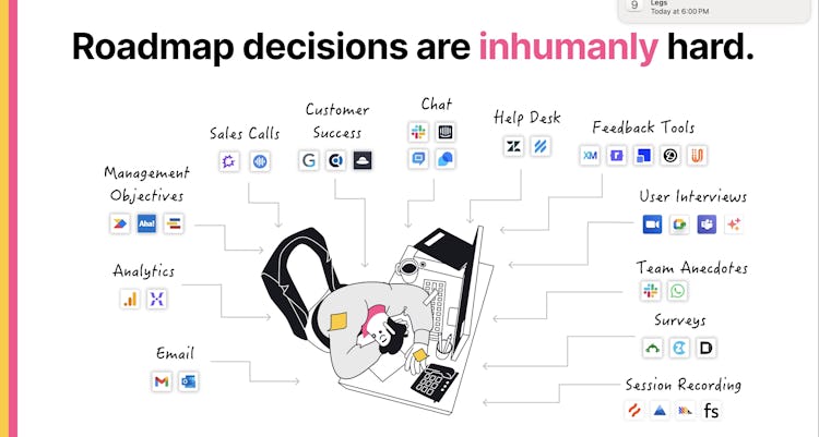 Usermuse digital product team members who talk to customers to quickly turn any meeting into roadmap clarity. It joins Zoom, Microsoft Teams, Google Meet, and Slack calls. It generates transcripts and automatically parses those transcripts into product signals (e.g., needs, pain points, and +/neutral/- sentiment).